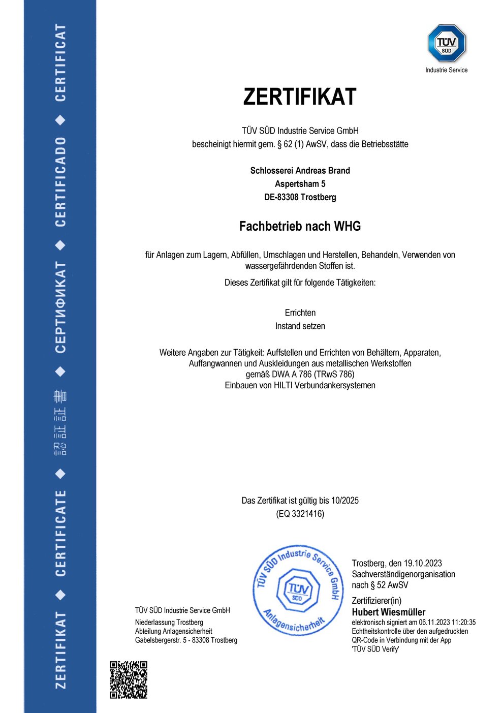 Fertigen und Instandsetzen von Auffangwannen und Ableitblechen nach WHG